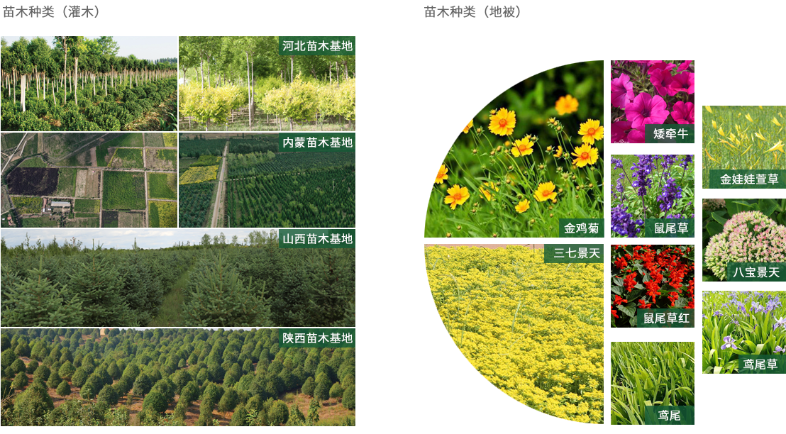 苗圃基地、苗木種類(地被)、苗木種類(喬木)、苗木種類(灌木)
